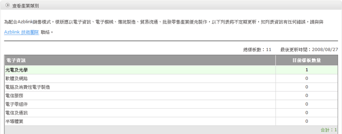 点选主选单中【查看产业类别】选项,选择列表中任ㄧ产业类别为您欲制作的网站样版。