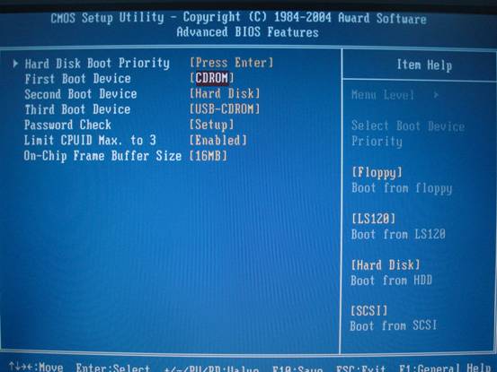 放入服务器光驱中;本系统提供了两种安装模式,第一种是安装成两颗硬盘互相备援(Mirror, Raid1)的系统:即若您的系统中装载着两颗完全相同规格的硬盘,而要将您的系统设置为两颗硬盘互相备援(Mirror)的系统,请在计算机页面的第一个询问上,回答“No”,然后在计算机的指令模式中输入「sohoraid」的命令后,然后只要回答计算机页面上的询问,按两次OK响应,Azblink AzOS和Azblink软件会自动安装到服务器上,若您用的是IDE的硬盘,在此建议您将两颗硬盘分别装在两个IDE Bus的 Master上,以提升硬盘存取效能。 第二种是硬盘无互相备援(No Mirror)的系统:不管您的系统中载有几颗硬盘,而只要将系统安装完成,那么,您只要回答计算机页面上的询问,按两次OK响应,Azblink AzOS和Azblink软件会自动安装到服务器上, (请注意:您必须预先设置机器的BIOS是以光驱开机,如下图中类似的BIOS画面所示,虽然各家不同但大同小异)。