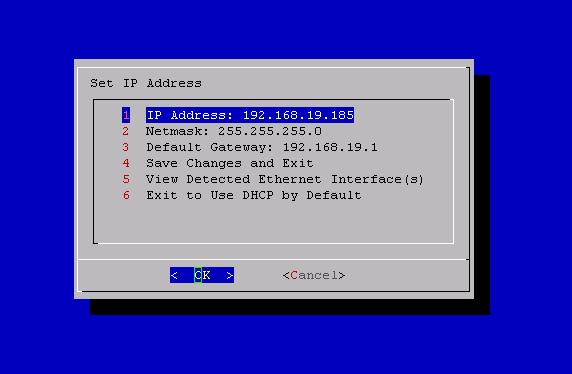欲自行设置固定的公共/私有IP地址,可利用选项1、2、3,将固定IP设置完毕,使用选项4储存并离开控制台设置画面,再将光盘片自光驱中取出后,按下机器的reset按钮,重新启动机器即可。