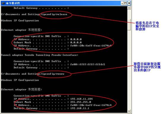 (如果使用自动取得被分派的网络IP地址没办法找到服务器的Web界面的话,可能是您的PC主机还存在着以前的IP,此时您必须将旧的IP释放掉,才能再取得新IP,您可以在您的Microsoft Windows PC里开启“命令提示字符”的视窗,在视窗中打下释放IP的指令「ipconfig/release」,释放掉旧IP之后,再打上指令「ipconfig/renew」 即可取得新的IP了)
