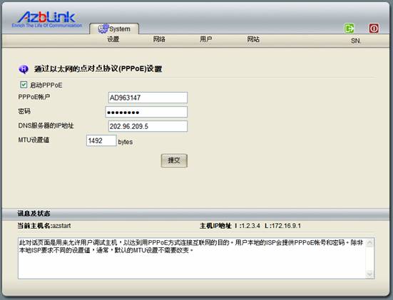PPPoE的帐户 按照ISP业者所提供给您的资料,如上海电信目前所用的是AD+六位数字(有固定IP)和八位数字(移动IP),但通常每一家ISP业者所提供的帐户格式都不尽相同,您只需依照ISP业者提供的资料填入有固定IP的便可。